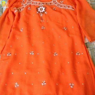 Vend Sari Indou de couleur orange avec fine strass argentès acheter à Paris de taille XL.