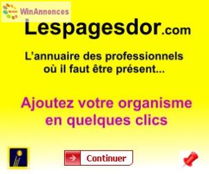 Visitez vite www.lespagesdor.com puis inscrivez-vous afin de pouvoir vous connecter à votre espace client pour ajouter votre organisme dans l'annuaire professionnel en choisissant la formule d'abonnement annuel Présence, Bronze, Gold ou Premium.
