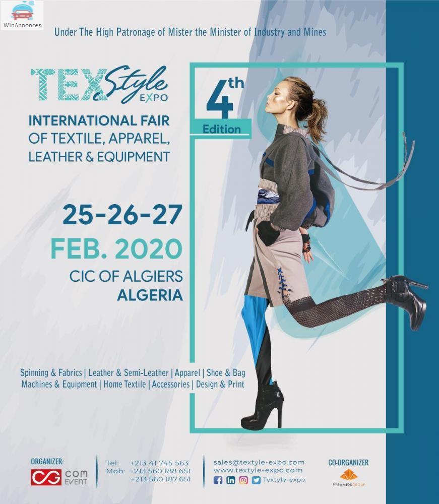 la 4éme édition de TexStyle Expo , le salon international du textile, de l'habillement, du cuir et des équipements se tiendra du 25 au 27 février 2020 au CIC d'Alger-Algérie
