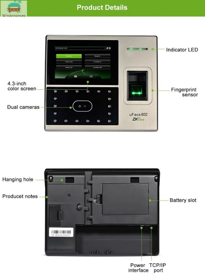 ZKTeco a lancé le terminal multi-biométrique uFace800 pour la gestion du temps et des présences ainsi que des applications de contrôle d'accès, qui prennent en charge jusqu'à 3 000 modèles de visages, 4 000 empreintes digitales et 10 000 cartes (en option). Il est équipé de la dernière plate-forme matérielle et algorithmique ZKTeco, qui offre aux clients une interface utilisateur plus intuitive et conviviale.