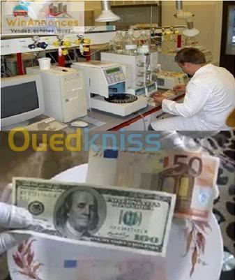De décapage. Le laboratoire " sane " met à la disposition de son aimable clientèle du matériel, des techniciens spécialisés et des produits ; Un service rapide et éfficace dans le nettoyage de billets masqués, cryptés ou cachétés (Noir, Vert, Rouge, etc...)